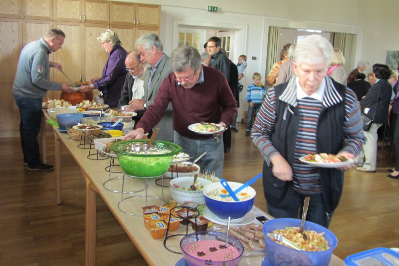 In der Predigt bezogen die Mitwirkenden die sie betreffenden Aussagen auf ihr eigenes Leben. Sie näherten sich dem Text damit sehr persönlich. Oft betonten sie, dass sie dem "lieben Gott" - trotz aller Unsicherheiten - vertrauen können und er auch aus gedrückter Stimmung und Gefahr heraushilft. Jesus stellte sich einst selbst als "Guter Hirte" vor und spendet damit auch heute Hoffnung und Zuversicht. Drei Taufen im Gottesdienst Im Laufe des Gottesdienstes hatte Pfarrer Kopkow die schöne Aufgabe, drei Menschen zu taufen. Eine Mutter mit ihren zwei Kindern wurde in die Gemeinde aufgenommen. Auch hier bekam jede getaufte Person jeweils einen Vers aus dem 23. Psalm mit auf ihren Lebensweg. Die Kinder erhielten ein Schäfchen als Symbol dafür, dass Gott wie ein guter Hirte auf sie aufpasst, die Erwachsene empfing eine Taufkerze als Symbol für Christus als "Licht der Welt". Abschied von Kirchenmusiker Bastian Domin Nachdem der Kirchenvorstand den langjährigen Organisten Bastian Domin aus seinem Dienst verabschiedet hatte, lud der Förderverein Sankt Markus zum traditionellen Erntedank-Brunch ein. Vorsitzender Eberhard Sieber bedankte sich bei allen Helferinnen und Helfern, die Speisen für das kalt-warme Buffet beigetragen haben. Opulentes Buffet bildete gelungenden Abschluss Profikoch Torsten Groß servierte eine schmackhafte Kürbissuppe, die reißenden Absatz fand und erfreute damit die zahlreich zum Brunch erschienenden Gäste. Als Zusammenfassung dieser ereignisreichen Begegnung kann der letzte Vers aus dem 23. Psalm dienen: "Gutes und Barmherzigkeit werden mir folgen mein Leben lang, und ich werde bleiben im Hause des HERRN immerdar."