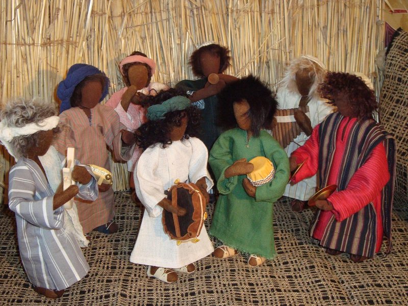 Figuren mit Daumen sind eine neuere Entwicklung. So kann ein Stock, ein Instrument oder ein Gefäß viel besser gegriffen werden. Vor diesem Hintergrund kam die Idee auf, ein Musikensemble zu gestalten.