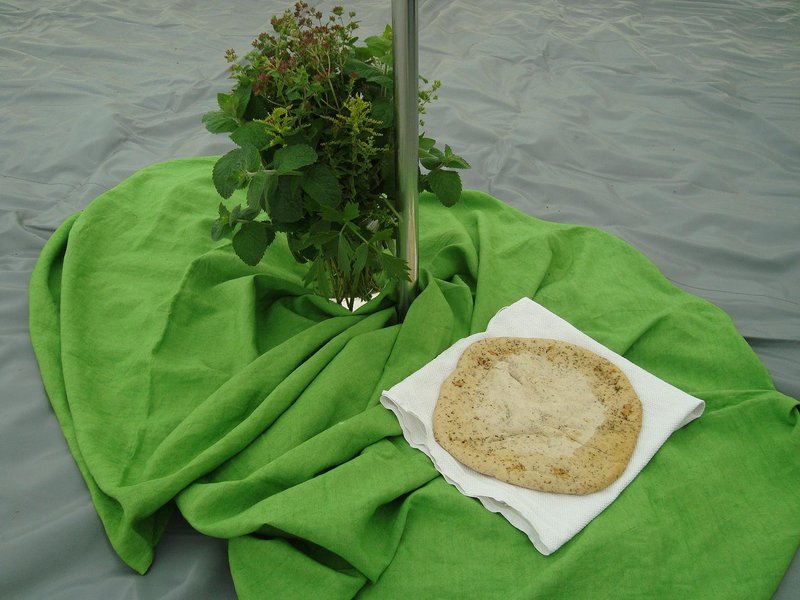 Ein Engel Gottes (in Form einer Wolkensäule bei Tag und Feuersäule bei Nacht) wies den Weg (2. Mose 13, 17ff.). Im Pilgerschritt gingen die Kinder nach der Geschichte von der Kirche ins Zelt, das auf dem Rasen vor den Gebäuden aufgebaut ist. Dort konnten sie sich mit ungesäuertem Brot stärken.