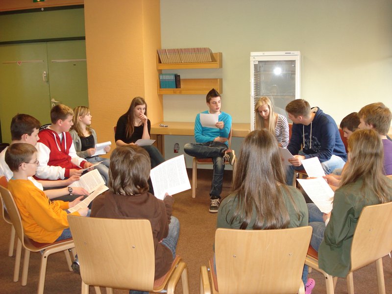 Die Konfirmandengruppe ging folgenden Fragen nach: Was macht einen Menschen zum Vorbild? Sind meine Eltern meine Vorbilder? Bin ich anderen Vorbild? Inwiefern ist Jesus mein Vorbild?