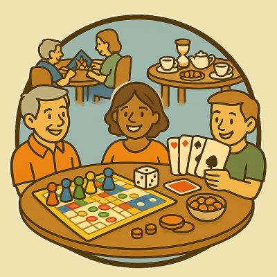 Ein Spieleabend bietet die Gelegenheit, in entspannter Atmosphäre zusammenzukommen und gemeinsam Brett‑, Karten‑ oder Würfelspiele zu spielen. Jede und jeder wählt spontan, worauf gerade Lust besteht – ob Klassiker oder Neues. Im Mittelpunkt stehen Gemeinschaft, Freude und Begegnung.