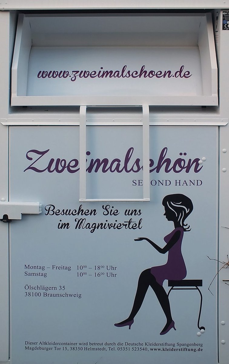Im Braunschweiger Magniviertel wurde im Oktober 2013 der erste „Zweimalschön"-Shop eröffnet. Die Deutsche Kleiderstiftung Spangenberg hat ein innovatives Charity-Shop-Konzept entwickelt. In diesen Räumlichkeiten dürfen sich Besucher auf eine preiswerte Auswahl an Kleidung, Schuhen, Taschen, Möbeln, Hausrat und Büchern freuen.